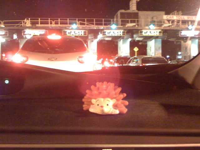 Aztán várt még ránk egy másfél óra, hogy megérkezzünk New Brunswickba. Természetesen autópálya és az elmaradhatatlan Toll Plaza is ugyanúgy várt minket. (Aki esetleg nem tudná mi az, a Toll Plaza nem analóg a bevásárlóközpontos plázákkal, bár pénzt itt is költhetsz azért, csak itt autópályadíjra. :P) Sünös kép is kellett akkor már: